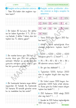 2. ÜNİTE Adı : TOPLAMA İŞLEMİ PROBLEMLERİ