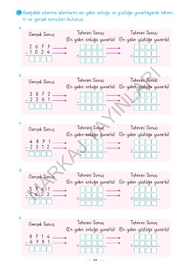 C Aşağıdaki çıkarma işlemlerini en yakın onluğa ve yüzlüğe yuvarlayarak tahmi-