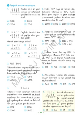 1. 4 2 3 8 Yandaki işlem en yakın 5. Fatih, 1079 TL’ye bir telefon aldı.
