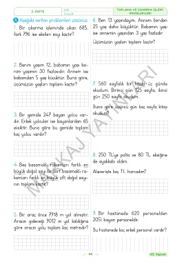 1. Bir çıkarma işleminde çıkan 685, 25 yaş daha büyüktür. Babamın yaşı