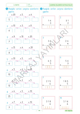 3. ÜNİTE Adı : ÇARPMA İŞLEMİNİ HATIRLAYALIM