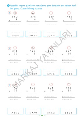 B Aşağıdaki çarpma işlemlerinin sonuçlarına göre dairelerin içine eşleşen harf-