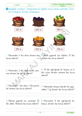 1. Manavdan 4 kilo elma alırsam kaç 5. Reçel yapmak için çilekten 12 kilo