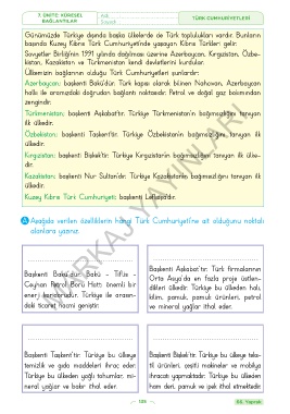 A Aşağıda verilen özelliklerin hangi Türk Cumhuriyeti’ ne ait olduğunu noktalı
