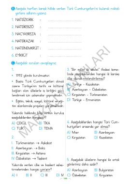 B Aşağıda harfleri karışık hâlde verilen Türk Cumhuriyetleri’ ni bularak noktalı