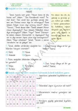 1. Temel, dükkân sahibinden aşağıdaki ba- 3. Sosisli, hangi ülkeye ait bir ye-