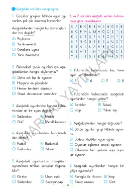 1. Çocuklar gruplar hâlinde oyun oy- 6 ve 7. soruları aşağıda verilen bulma-