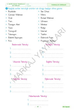 A Aşağıda verilen teknolojik ürünleri ait olduğu başlığın altına yazınız.