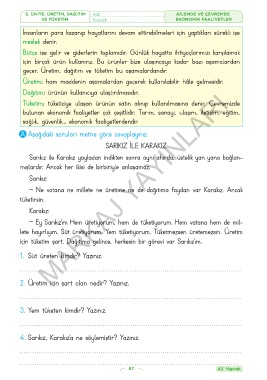 5. ÜNİTE: ÜRETİM, DAĞITIM Adı : AİLEMDE VE ÇEVREMDE