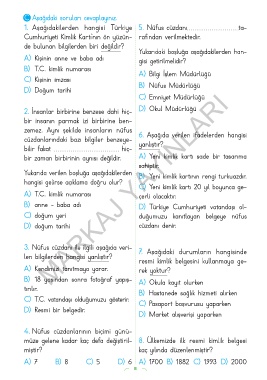 1. Aşağıdakilerden hangisi Türkiye 5. Nüfus cüzdanı ta-
