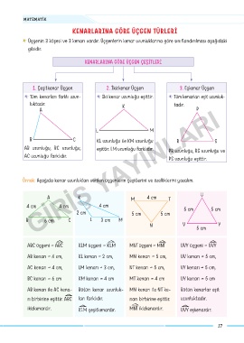 Üçgenin 3 köşesi ve 3 kenarı vardır. Üçgenlerin kenar uzunluklarına göre sınıflandırılması aşağıdaki