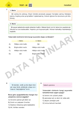 Page 60 - 4. SINIF PARAGRAF VE MANTIK MUHAKEME SORU BANKASI - DATA YAYINLARI
