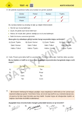 Page 88 - 4. SINIF PARAGRAF VE MANTIK MUHAKEME SORU BANKASI - DATA YAYINLARI