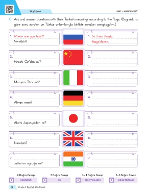 C. Ask and answer questions with their Turkish meanings according to the flags. (Bayraklara