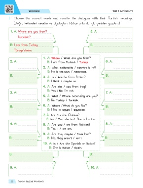 2. A: B: I am from Turkish / Turkey. 6. A: