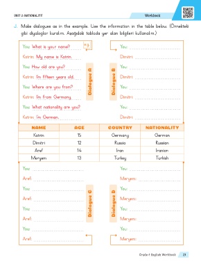 J. Make dialogues as in the example. Use the information in the table below. (Örnekteki