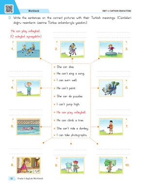 D. Write the sentences on the correct pictures with their Turkish meanings. (Cümleleri