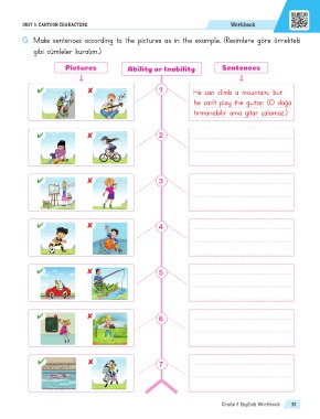 G. Make sentences according to the pictures as in the example. (Resimlere göre örnekteki