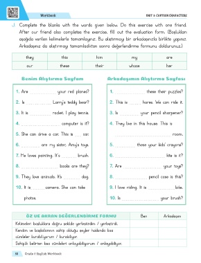 After our friend also completes the exercise, fill out the evaluation form. (Boşlukları