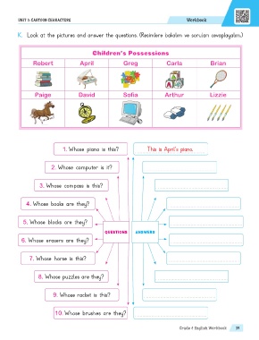K. Look at the pictures and answer the questions. (Resimlere bakalım ve soruları cevaplayalım.)