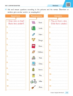 M. Ask and answer questions according to the pictures and the names. (Resimlere ve