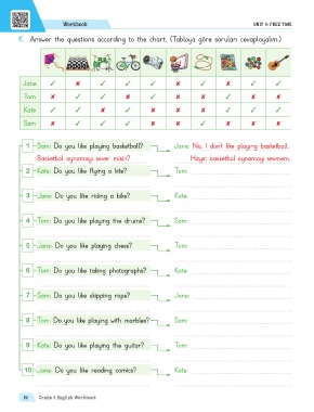 K. Answer the questions according to the chart. (Tabloya göre soruları cevaplayalım.)