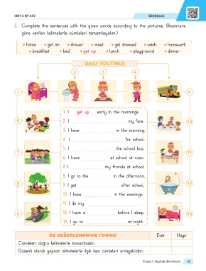E. Complete the sentences with the given words according to the pictures. (Resimlere