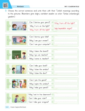 D. Choose the correct sentences and write them with their Turkish meanings according