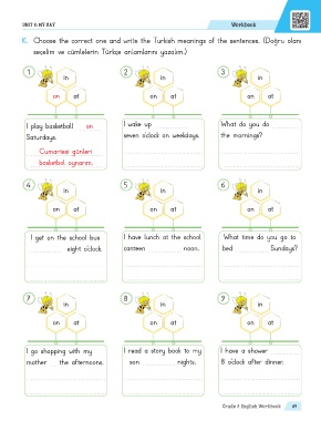 K. Choose the correct one and write the Turkish meanings of the sentences. (Doğru olanı