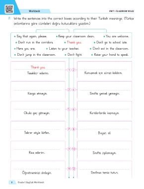 F. Write the sentences into the correct boxes according to their Turkish meanings. (Türkçe