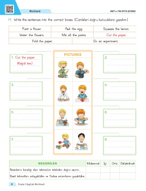 H. Write the sentences into the correct boxes. (Cümleleri doğru kutucuklara yazalım.)
