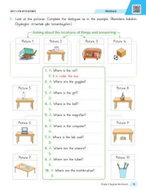K. Look at the pictures. Complete the dialogues as in the example. (Resimlere bakalım.