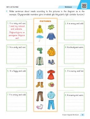 K. Make sentences about needs according to the pictures in the diagram as in the