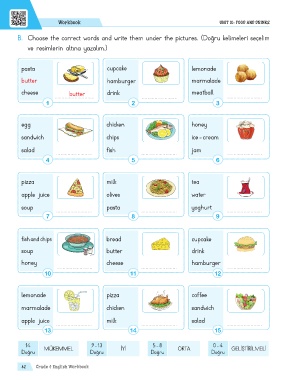 B. Choose the correct words and write them under the pictures. (Doğru kelimeleri seçelim