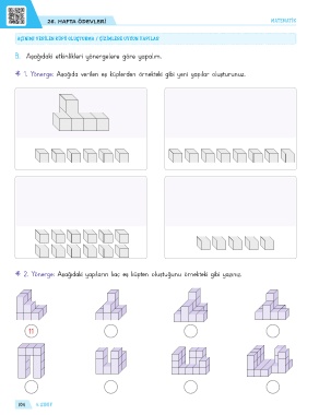 2. Yönerge: Aşağıdaki yapıların kaç eş küpten oluştuğunu örnekteki gibi yazınız.