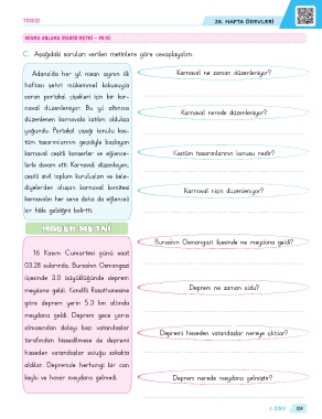 C. Aşağıdaki soruları verilen metinlere göre cevaplayalım.
