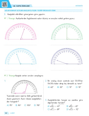 ölçüm yapılmıştır. Açının ölçüsü aşağıdakiler- 3. Aşağıdakilerden hangisi açı çeşidine göre