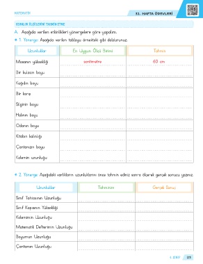 Uzunluklar En Uygun Ölçü Birimi Tahmin