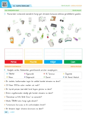 D. Numaraları kullanarak nesnelerin hangi geri dönüşüm kutusuna atılması gerektiklerini yazalım.