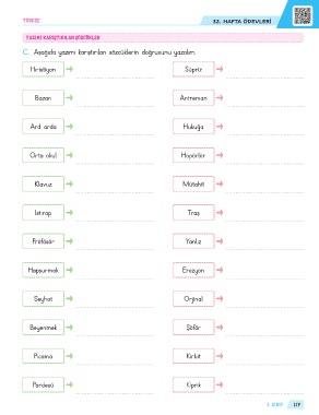 C. Aşağıda yazımı karıştırılan sözcüklerin doğrusunu yazalım.