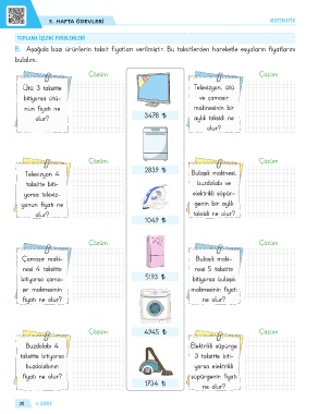 B. Aşağıda bazı ürünlerin taksit fiyatları verilmiştir. Bu taksitlerden hareketle eşyaların fiyatlarını