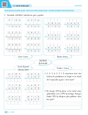 Çıkarma İşlemi Problem Çözme