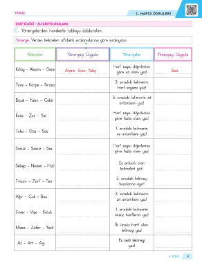 C. Yönergelerden hareketle tabloyu dolduralım.