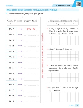 ÇARPMA İŞLEMİNİN SONUCUNU TAHMİN ETME / ÇARPMA İŞLEMLERİ İLE İLGİLİ PROBLEMLER