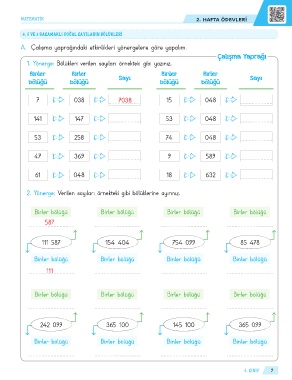 1. Yönerge: Bölükleri verilen sayıları örnekteki gibi yazınız.