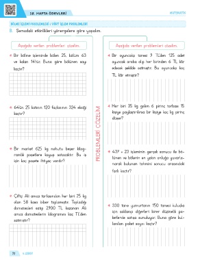 BÖLME İŞLEMİ PROBLEMLERİ / DÖRT İŞLEM PROBLEMLERİ