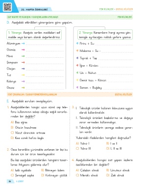 1. Yönerge: Aşağıda verilen maddeleri saf 2. Yönerge: Karışımların hangi ayırma yön-