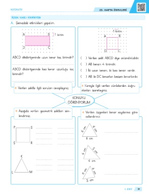 ABCD dikdörtgeninde uzun kenar kaç birimdir? ( ) Verilen şekil ABCD diye anlandırılabilir.