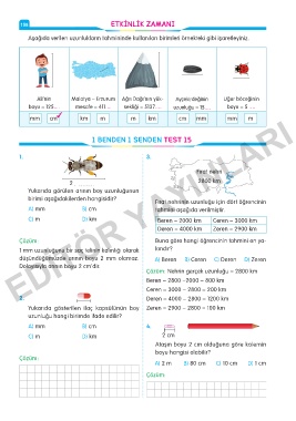A Aşağıda verilen uzunlukların tahmininde kullanılan birimleri örnekteki gibi işaretleyiniz.