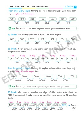 { Not: İleriye doğru biner ritmik saymada sayının binler basamağı 1 artar.